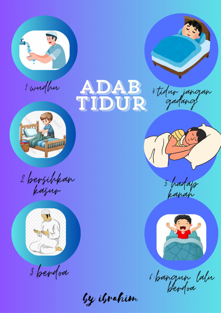 ADAB TIDURBy baim / 7 September,2025 this is poster about attitude before sleep wudhu clean the bed pray before sleep sleep dont stay up face the rigth wake up then pray